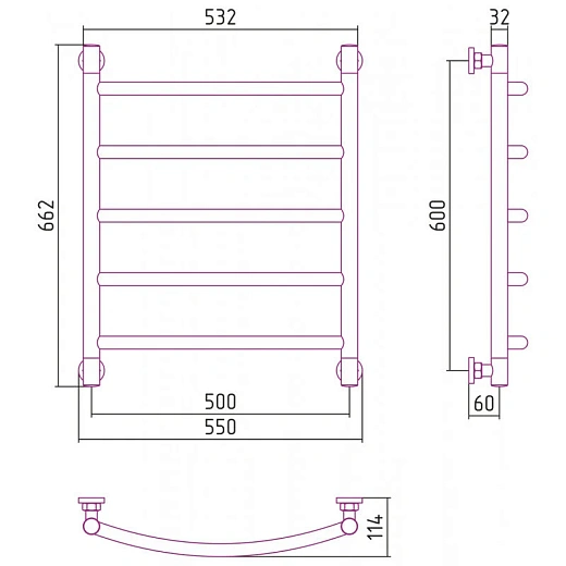 Полотенцесушитель водяной Сунержа Галант+ 30-0200-6050, 600x500, матовый белый