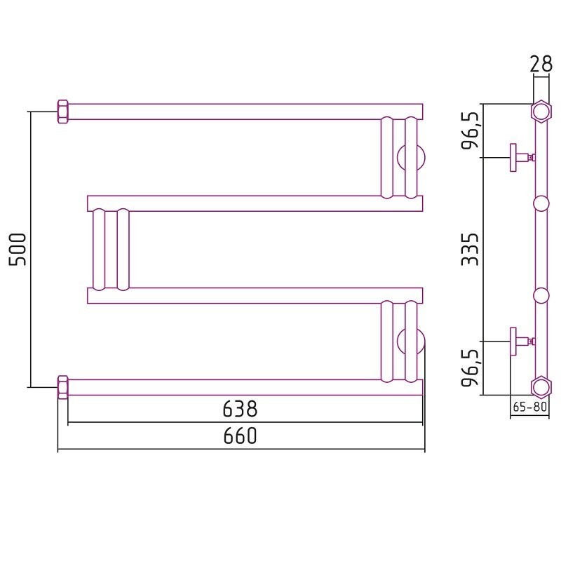 Полотенцесушитель водяной Сунержа High-Tech M+ 50x65 / 00-4050-5065