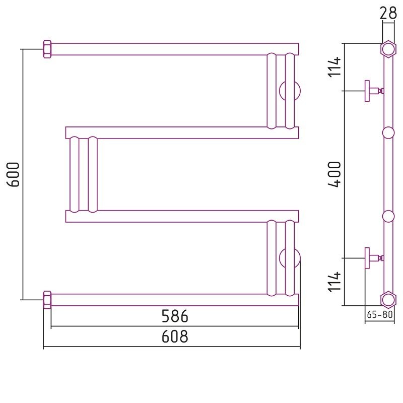 Полотенцесушитель водяной Сунержа High-Tech M+ 60x60 / 00-4050-6060
