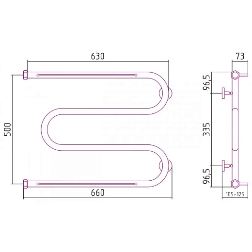 Полотенцесушитель водяной Сунержа М-образный+ 12-4008-5065, 500x650, с 2 полками, белый