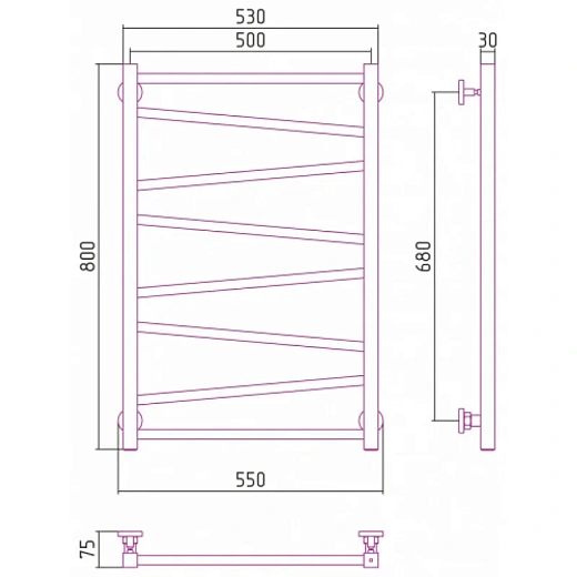 Полотенцесушитель для ванной водяной Сунержа Сирокко 30-0253-8050, 800x500, белый матовый