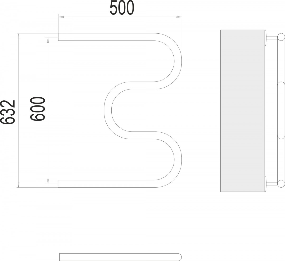 Полотенцесушитель водяной Terminus М-образный 32 (1") 600x500 ширина: 50 см, высота: 63.2 см, форма: м-образная, подключение: боковое