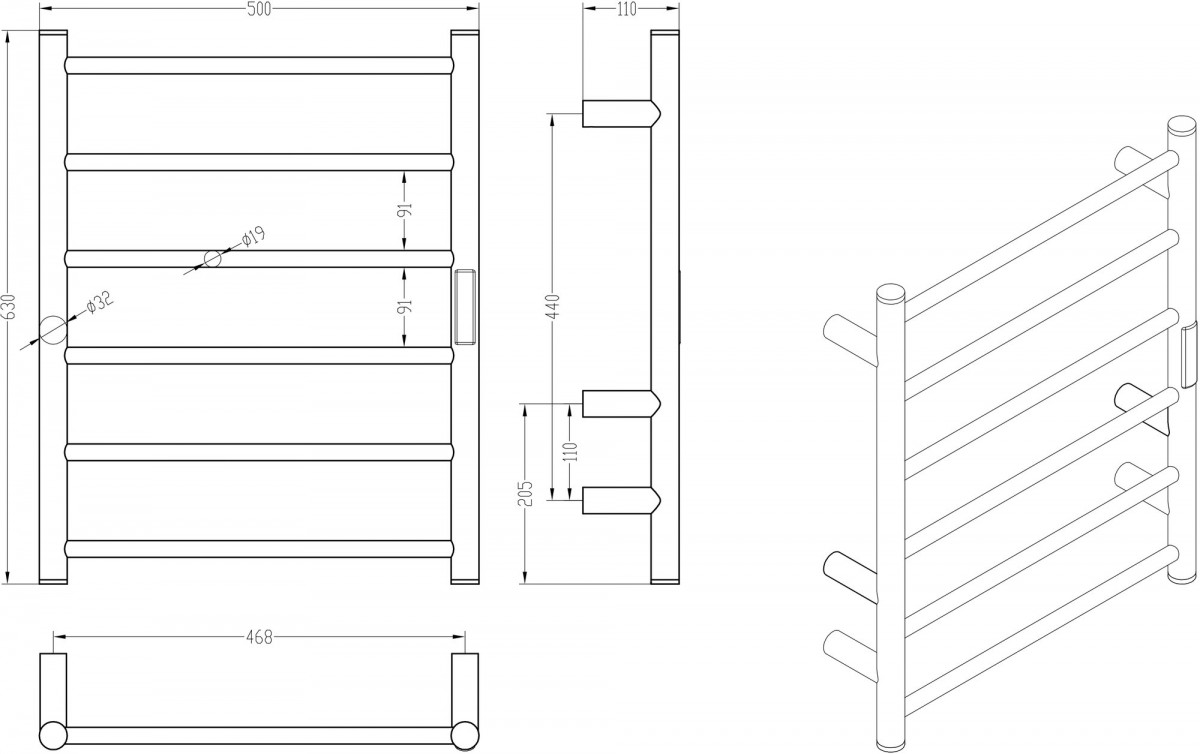 В комплекте: | Полотенцесушитель Съемный шнур с вилкой, 1,5 м Крепления, 6 шт Паспорт Гарантийный талон |