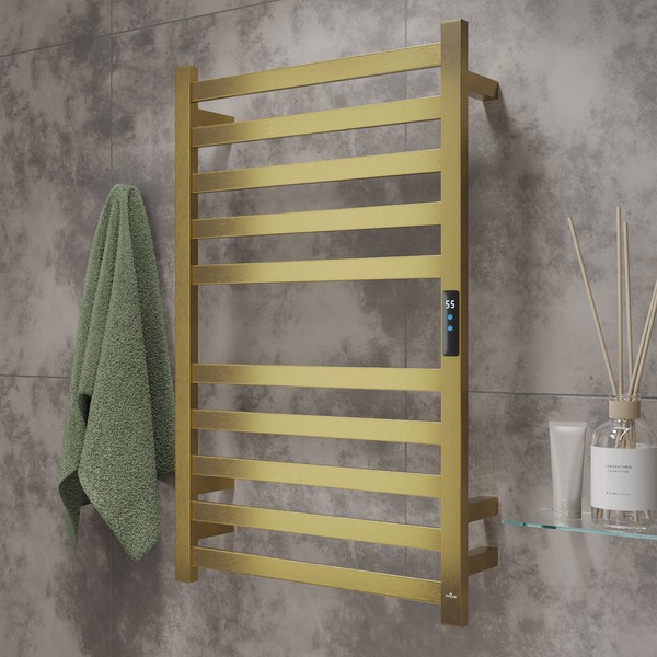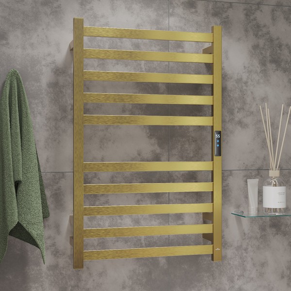Полотенцесушитель электрический Roxen Plaza 11040-5079BG брашированное золото, лесенка, нержавеющая сталь, 10 перекладин, ширина: 500 мм, высота: 790 мм, таймер, терморегулятор