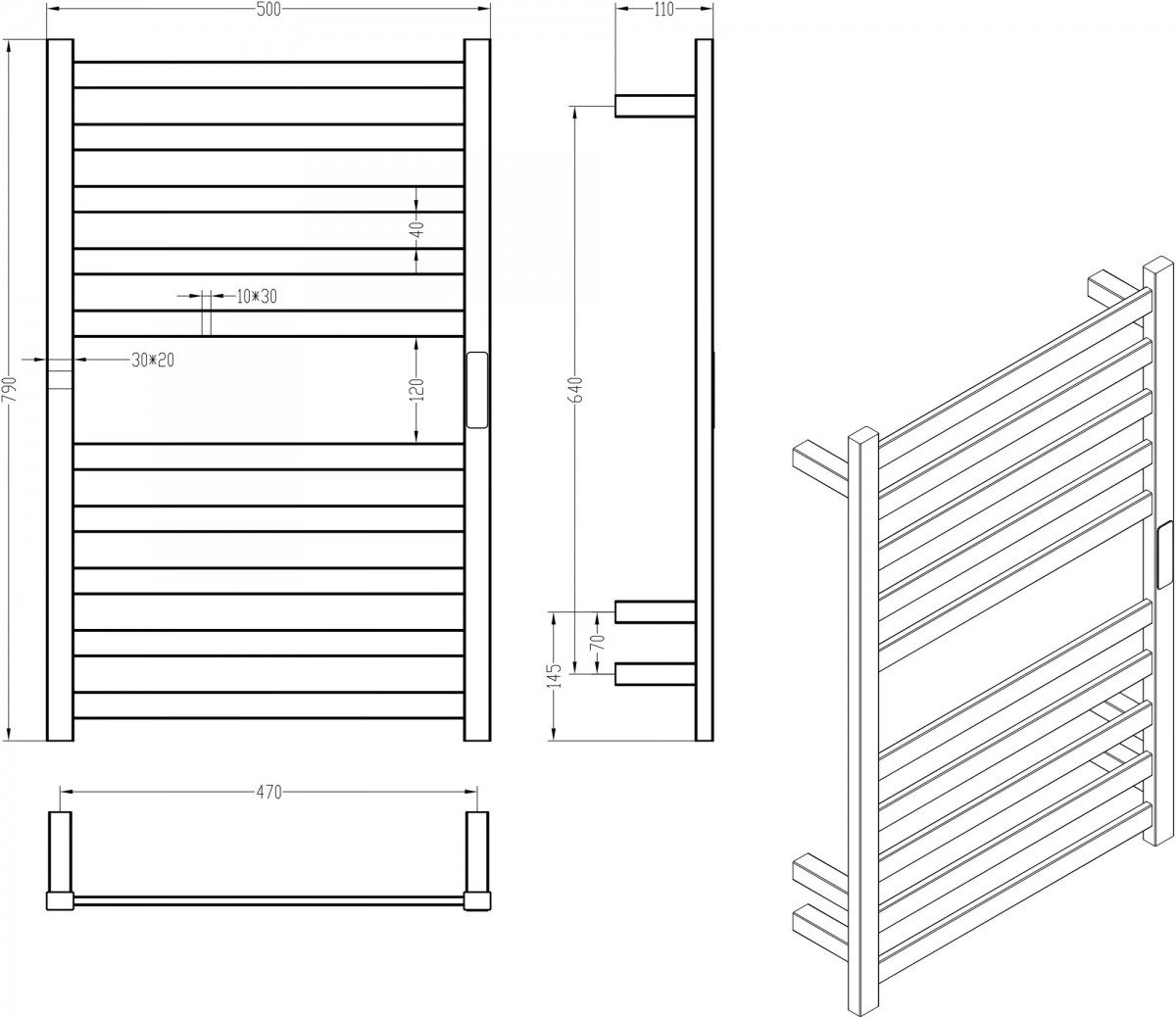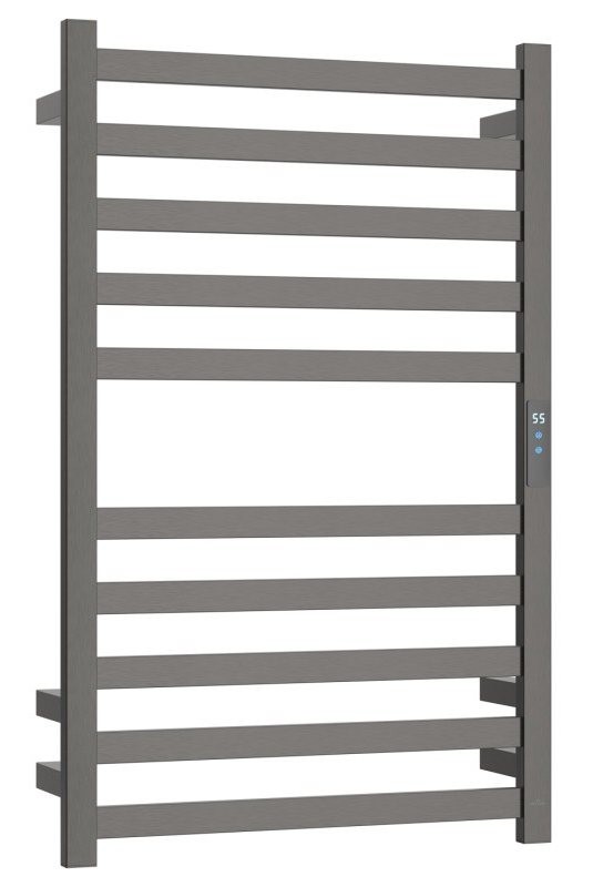 Полотенцесушитель Roxen Plaza 11040-5079GM электрический, 50х79 - стильная модель в цвете оружейная сталь с прямоугольными перекладинами. Полотенцесушитель имеет сенсорную панель управления, таймер отключения на 1-9 часов и регулировку температуры. Изготовлен из высококачественной нержавеющей стали толщиной 2 мм. Уникальное покрытие PVD - это обработка поверхности металла в вакуумной среде путем воздействия на него молекулами других металлов для получения особо прочной и твердой поверхности, делая ее максимально устойчивой к воздействию влаги, температуры и механических повреждений. Для процесса PVD-обработки используются титан и цирконий. В качестве нагревательного элемента используется нагревательный кабель сухого типа, который при включении быстро и равномерно прогревает всю поверхность изделия и отлично держит температуру. Подключение при помощи кабель-вилки, либо возможен вариант скрытого электрического соединения. Каждый полотенцесушитель проходит лазерную обработку швов, что дает увеличенный гарантийный срок до 10 лет.