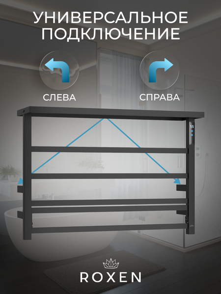 Полотенцесушитель электрический Roxen Velar 11060-4565-В черный, лесенка, нержавеющая сталь, 6 перекладин, ширина: 500 мм, высота: 630 мм, таймер, терморегулятор