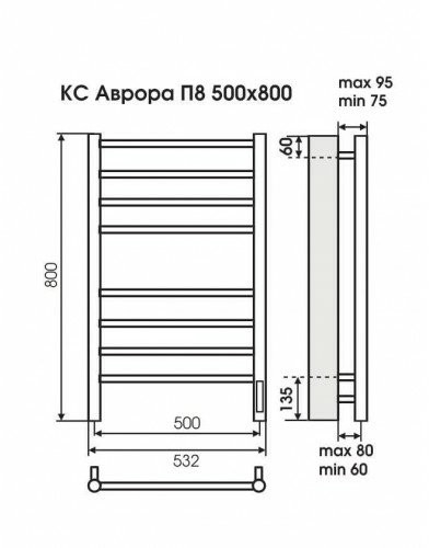 Полотенцесушитель электрический Terminus Аврора П8 500x800 (quick touch) графит, монтаж: подвесной, форма: лесенка, потребляемая мощность: 130 Вт, материал: сталь, цвет: графит