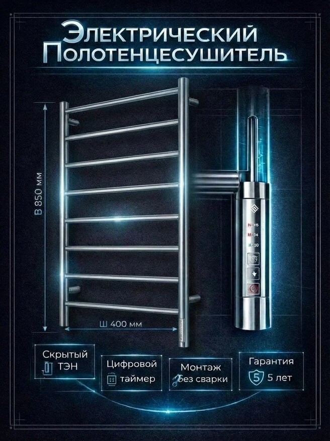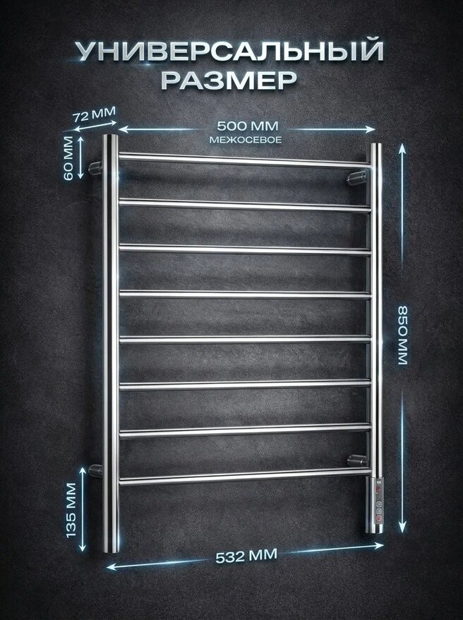 Полотенцесушитель электрический Terminus Аврора П8 500x850 c терморегулятором quick touch