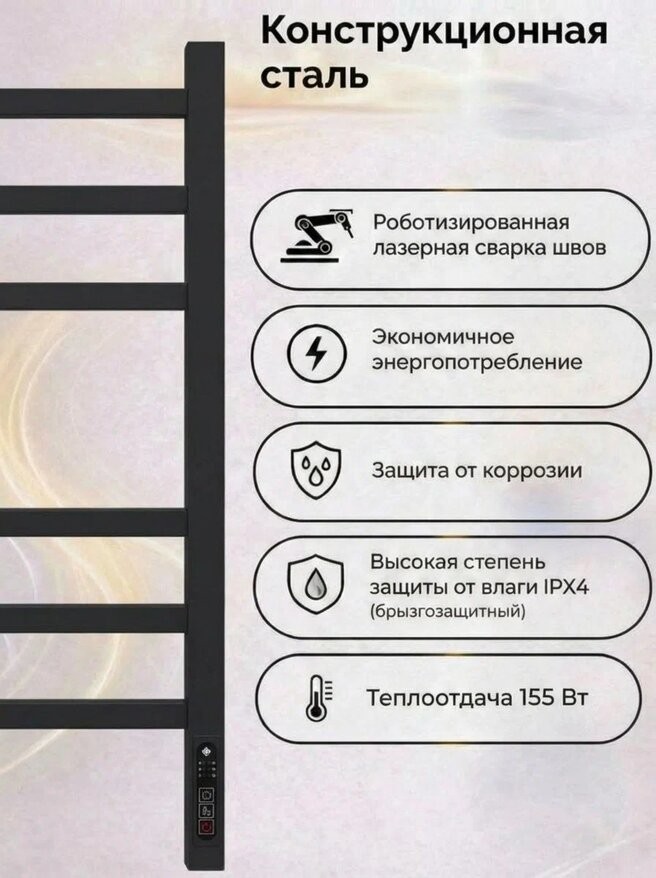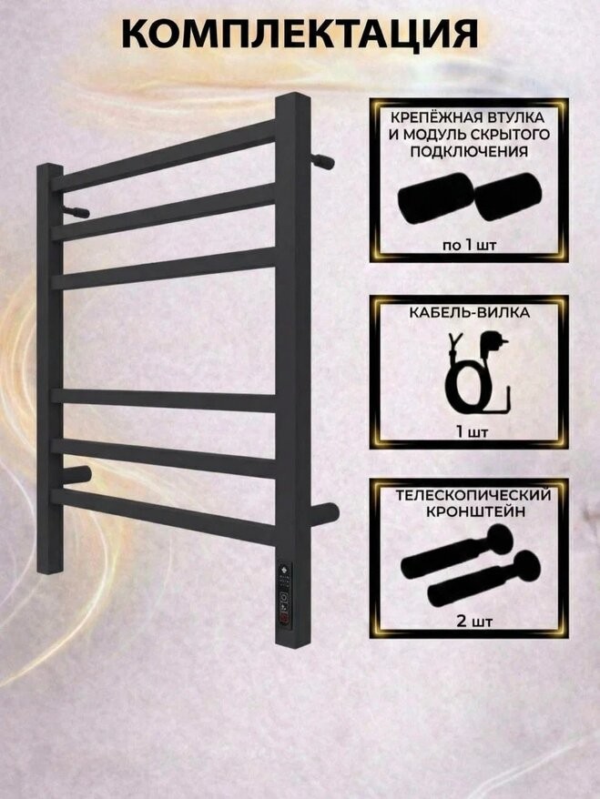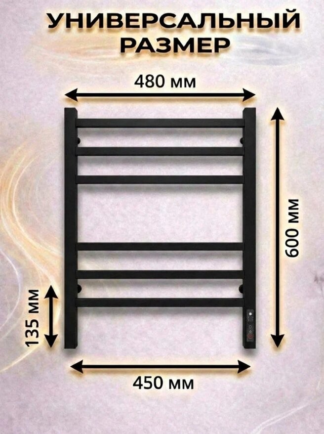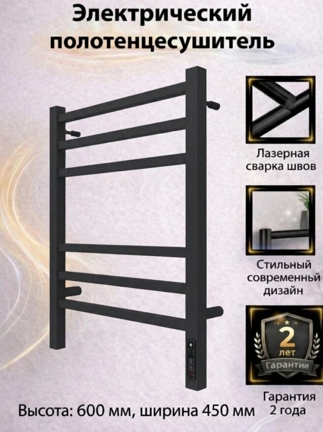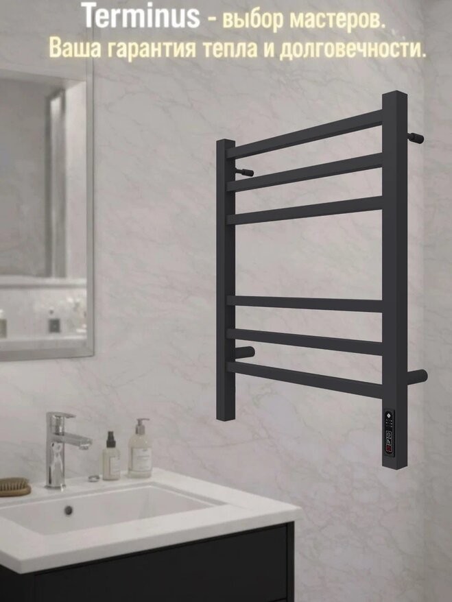 Полотенцесушитель электрический Terminus Ватикан КС П6 450x600 черный c терморегулятором quick touch. Выполнен из конструкционной стали.