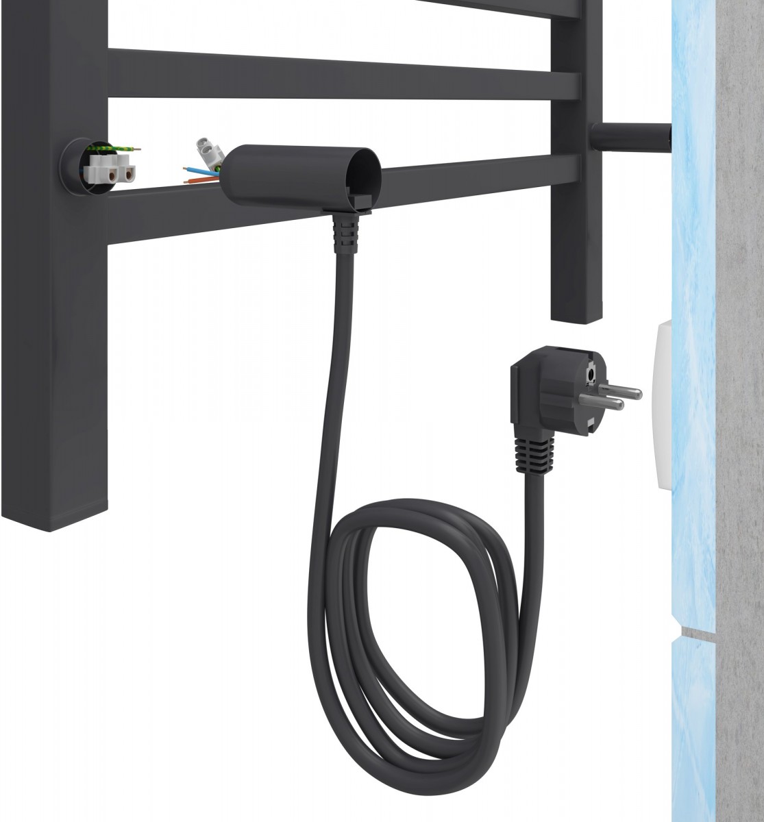 В комплекте: | полотенцесушитель; телескопическое крепление; модуль скрытого подключения; съемный кабель |