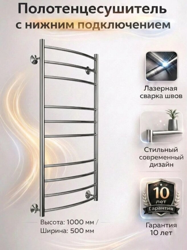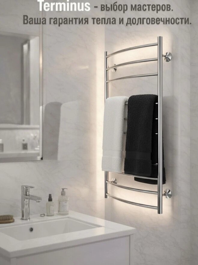 Полотенцесушитель Terminus Классик П10 нижнее подключение сатин — классическая лесенка с дугообразными перекладинами, с отделкой "сатин". Полотенцесушитель станет заметной деталью интерьера, поможет снизить влажность и быстро просушить мелкие вещи. Модель выполнена из нержавеющей стали. Полотенцесушители Terminus проходят лазерную обработку швов, что сводит к минимуму вероятность протекания и дает возможность увеличить гарантийный срок до 10 лет.
