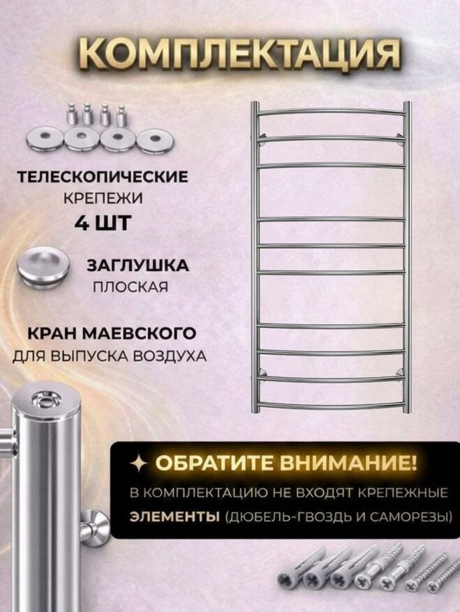 | В комплекте: | телескопические держатели к стене, кран Маевского, заглушка, паспорт изделия. |
