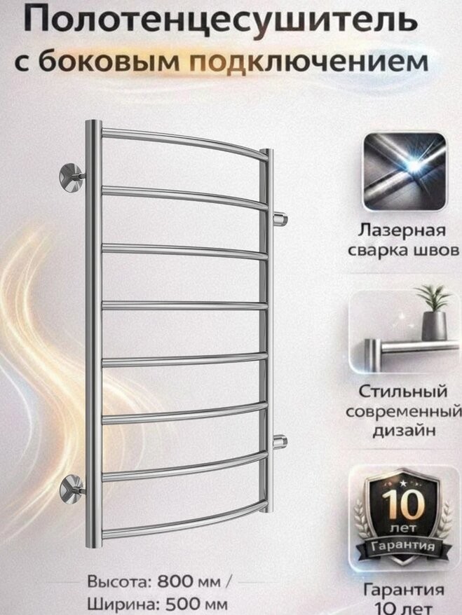 Полотенцесушитель водяной Terminus Классик П8 500х800 RAL 9005 боковое подключение (м/о 500) сатин