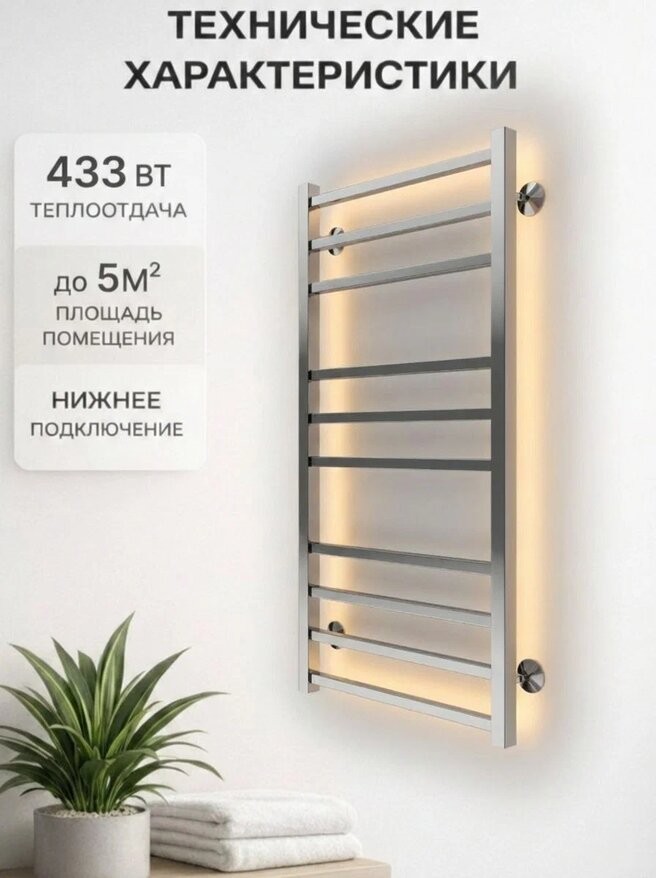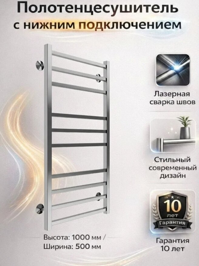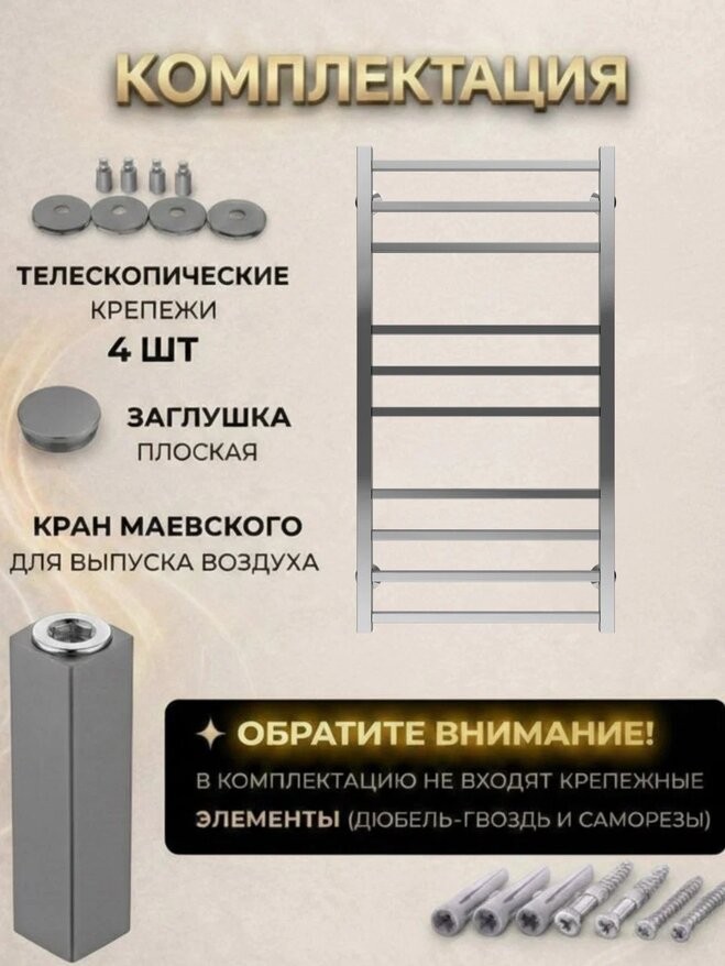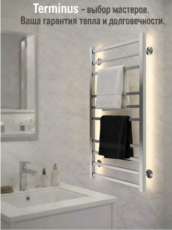 Полотенцесушитель водяной Terminus Ватикан П10 500х1000. Крепления в комплекте. Соединения приобретаются дополнительно.