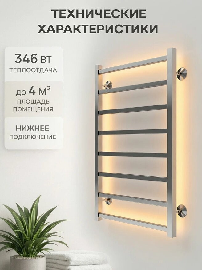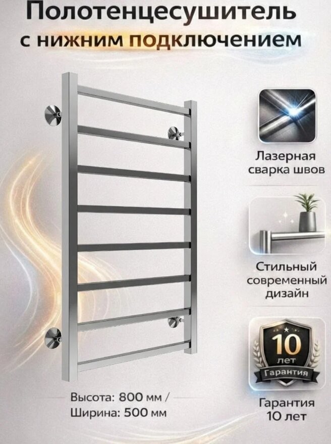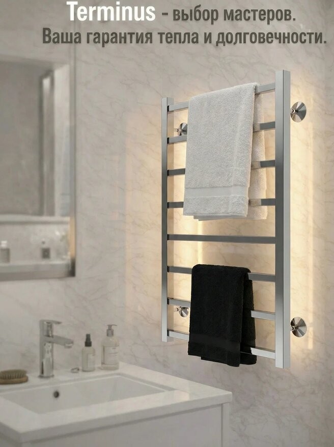 Полотенцесушитель водяной Terminus Ватикан П8 500х800. Крепления в комплекте. Соединения приобретаются дополнительно.
