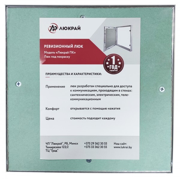 Люк Люкрай ПК 40-60 - универсальный распашной люк под покраску, предназначенный как для настенного, так и потолочного монтажа. За счет своей небольшой толщины (30 мм), люк данного типа можно устанавливать не только в стены из кирпича, пеноблоков и т.д., но и в гипсокартонные конструкции.