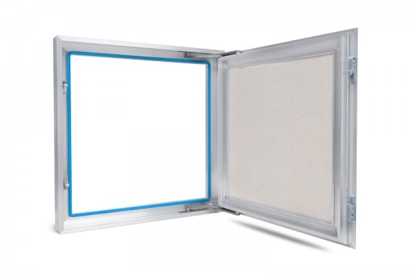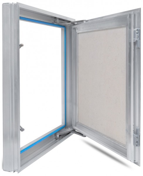 В основе дверцы люка установлен гипсокартон, толщиной 9.5 мм. Открывание дверцы обеспечивают качественные нажимные замочки, без применения ручек, ключей и присосок. После облицовки плиткой и другими отделочными материалами, люк становится полностью невидим.