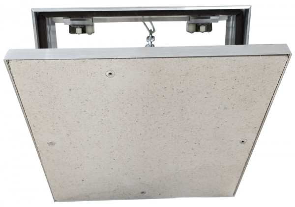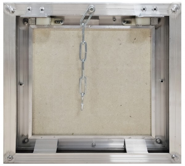 По периметру основания люк обклеен уплотнителем, что обеспечивает защиту содержимого люка от попадания пыли, влаги и др. Сама дверца выполнена из влагостойкого гипсокартона, благодаря которому люк можно устанавливать в местах с повышенной влажностью (ванная комната, кухня и т.д.). Облицовка люка может производиться любым отделочным материалом.