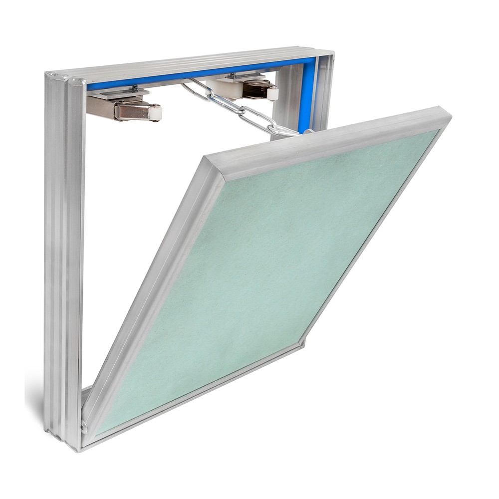 Люк открывается и закрывается нажатием, БЕЗ ПРИСОСОК и прочих приспособлений. Каждый лючок дополнительно оснащен уплотнителем. Люк можно использовать в помещениях с повышенной влажностью (кухня, ванная комната и т.п.). Дверца скрытого лючка сделана из влагостойкого гипсокартона. Защищает коммуникации за люком от влаги, пыли.