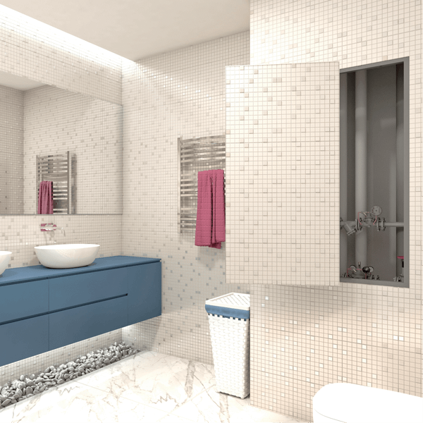 - дизайн: после отделки плиткой или другим материалом дверца становится практически невидимой, сохраняя целостность облицовки.