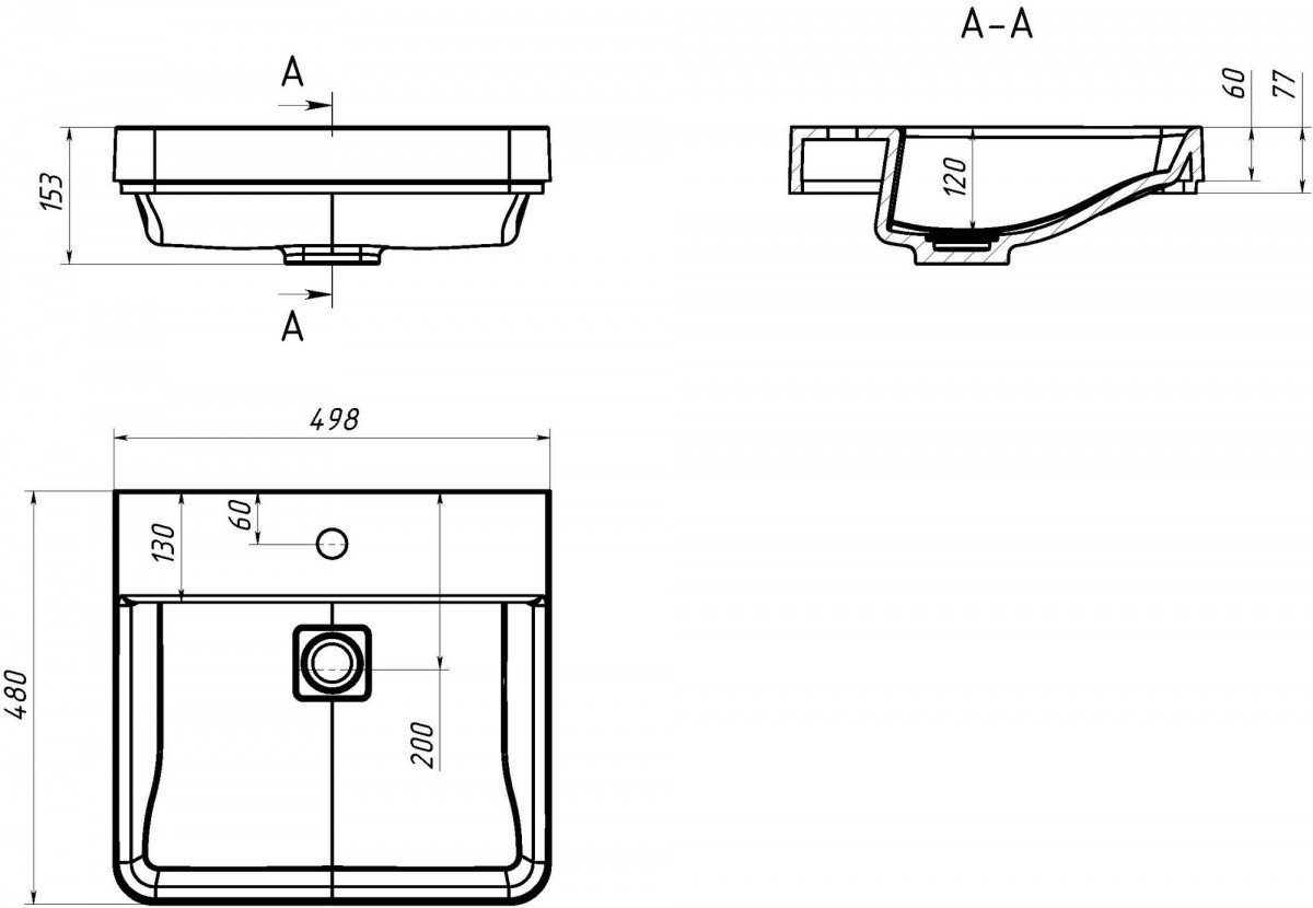 Умывальник Белюкс Бланес БЛ-500 - Ширина: 50 см, Глубина: 46.5 см, Конструкция: На тумбу, Материал: Искусственный камень, Цвет: Белый