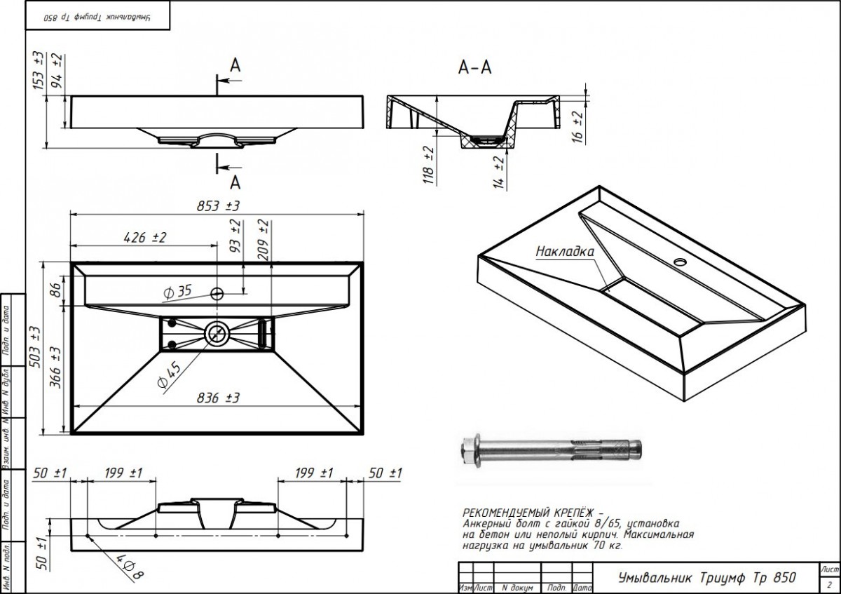 | Конструкция: | накладная |