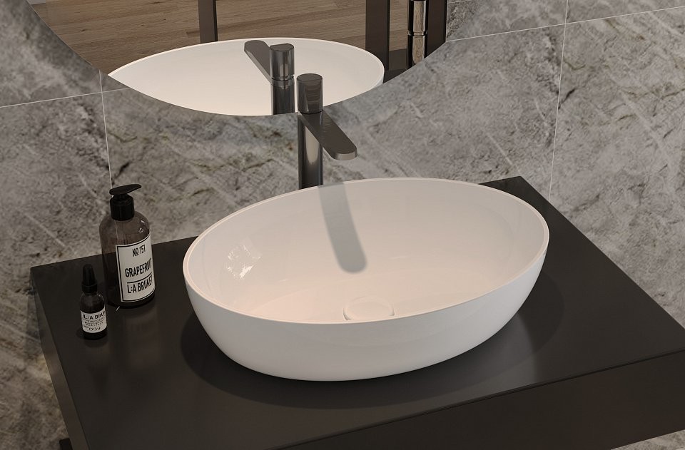 Умывальник Белюкс Турин 540 Эллипс 54x38 белый - Ширина: 54 см, Глубина: 38 см, Конструкция: На столешницу, Материал: Искусственный камень, Цвет: Белый