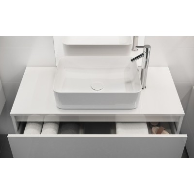 Установка раковины возможна как на мебельную тумбу, так и на столешницу.