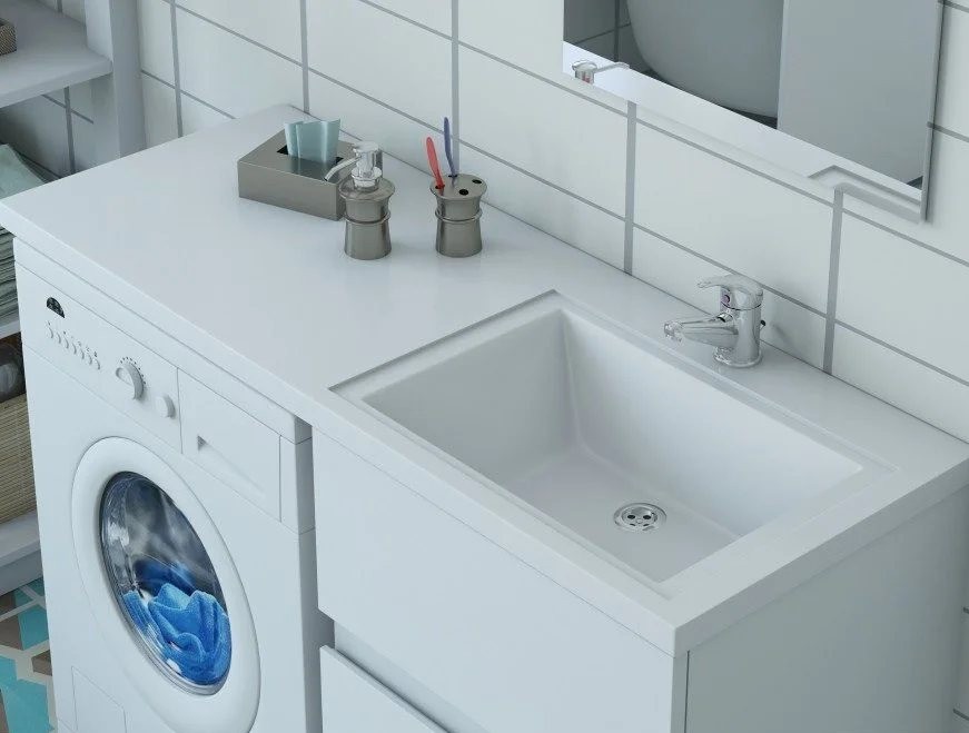 Раковина Даллас — это новый стандарт качества и функциональности. Предназначенная для установки под стиральную машину, раковина представляет собой прямоугольную столешницу, со встроенной с правой стороны глубокой чашей. Такой способ позволяет красиво и эстетично вписать бытовую технику в облик современной ванной комнаты. Модель изготовлена из литьевого мрамора, который прослужит не одно десятилетие, радуя Вас практичностью и первозданным внешним обликом.