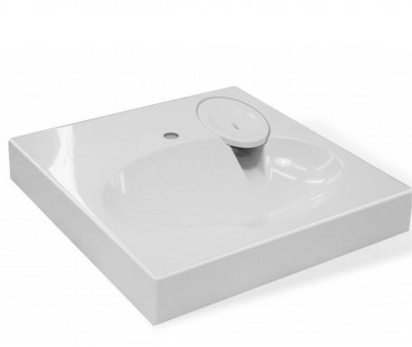 Квадратная раковина Lea из литьевого мрамора, установленная над стиральной машинкой, позволит оптимально организовать пространство и компенсирует нехватку площади, не ограничив функциональные возможности ванной комнаты. Особенностью ее стильного дизайна является контраст обтекаемой овальной чащи и прямоугольной столешницы, а также встроенная мыльница.