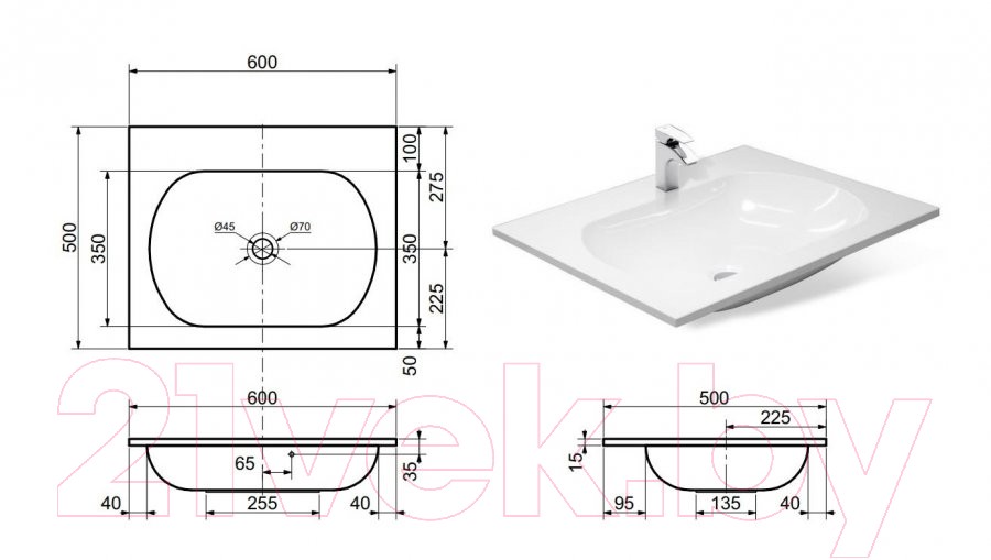 Лаконичный дизайн позволит вписать раковину Милана 60 в любой современный интерьер. Прямоугольная встраиваемая конструкция модели, изготовленная из литьевого мрамора, наделена глубокой овальной чашей, которая создает комфортные условия во время водных процедур. Благодаря компактным размерам, раковина подходит для небольших помещений, при этом покупатель по достоинству отметит долговечность и легкость ухода за изделием.