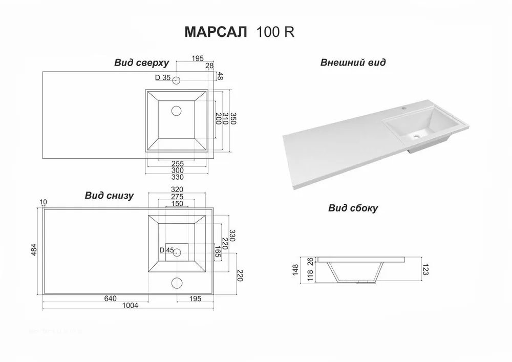 Умывальник Marko Марсал 130 белый мрамор, правый - Ширина: 130 см, Глубина: 48.2 см, Конструкция: На столешницу, Материал: Искусственный камень, Цвет: Белый
