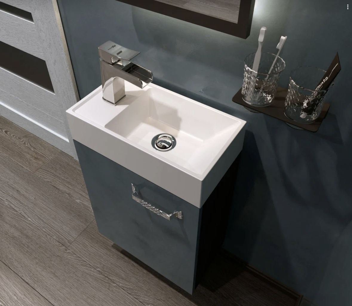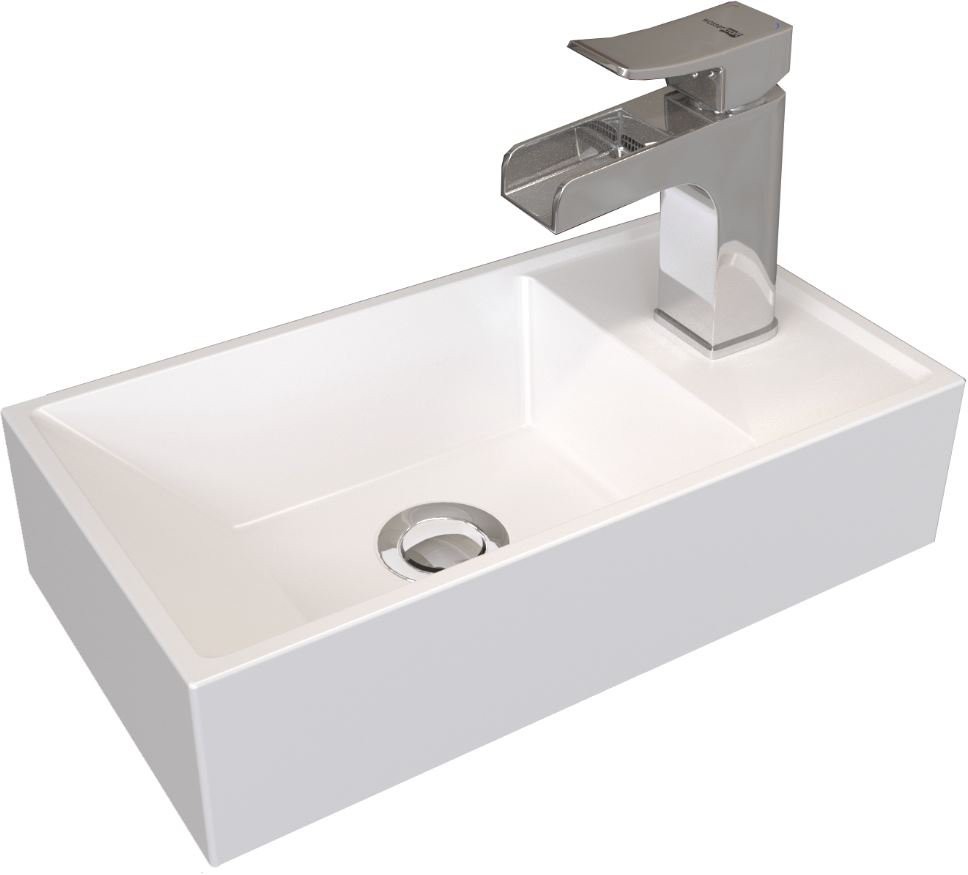 Умывальник мебельный Versalia Bazis Mini белый глянец - Ширина: 41 см, Глубина: 22.5 см, Конструкция: На тумбу, Материал: Искусственный камень, Цвет: Белый