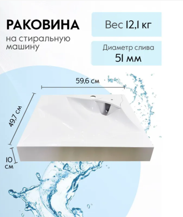 Умывальник на стиральную машину Marko Элиста 60 59x49 белый - Ширина: 59 см, Глубина: 49 см, Конструкция: На стиральную машину, Материал: Искусственный камень, Цвет: Белый
