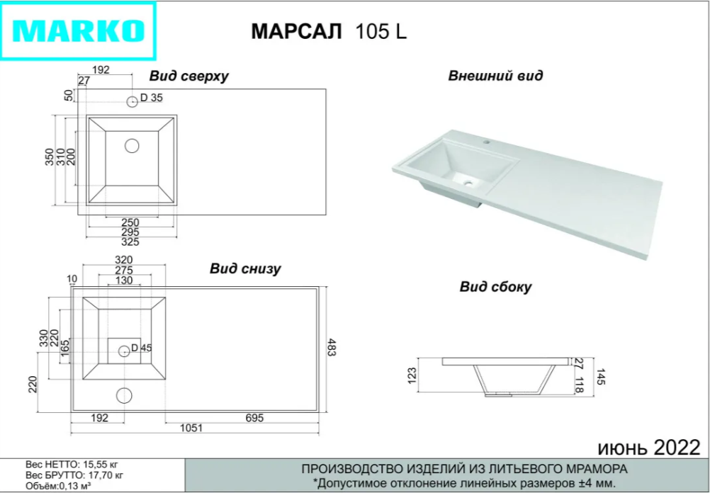 - Материал - искусственный мрамор