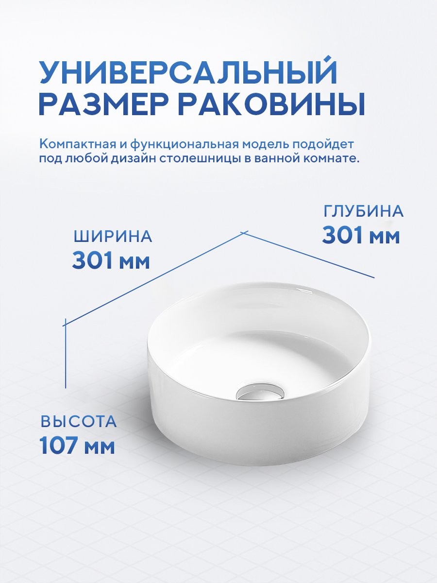 Раковина для ванной накладная Amore di Mare Bella 30402-RD 30,1x30,1 белый