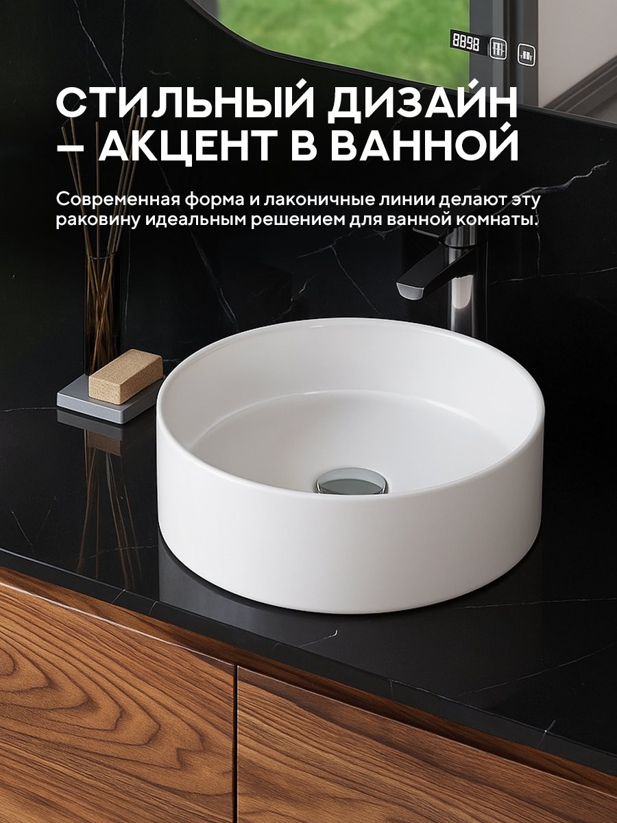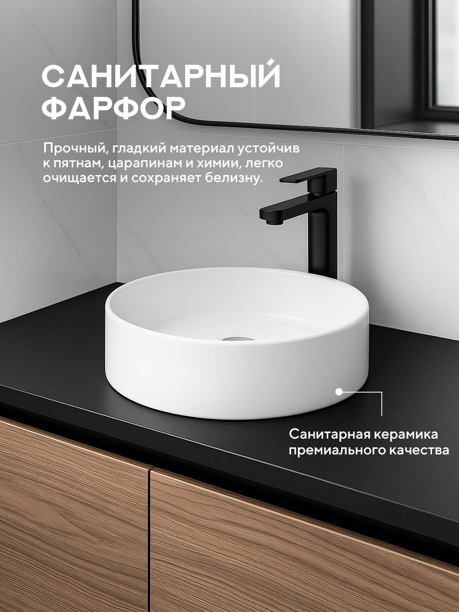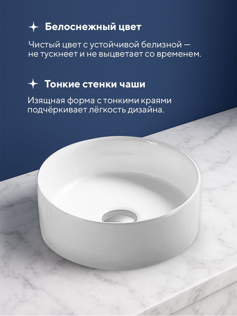 Фарфор, из которого изготовлены раковины, сохраняет свой привлекательный внешний вид даже при длительном использовании.