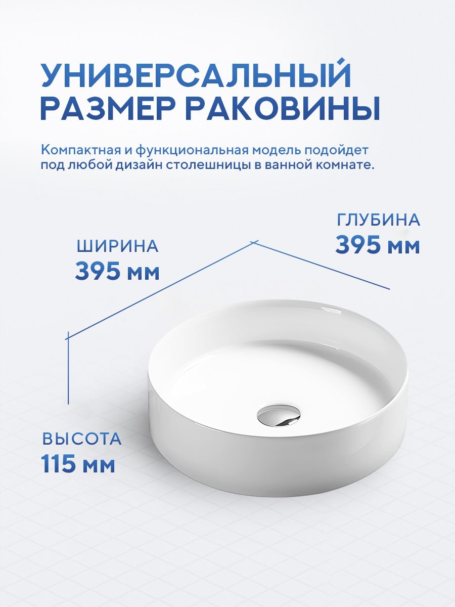 Умывальник накладной Amore di Mare Bella 39404-RD 39,5x39,5 белый