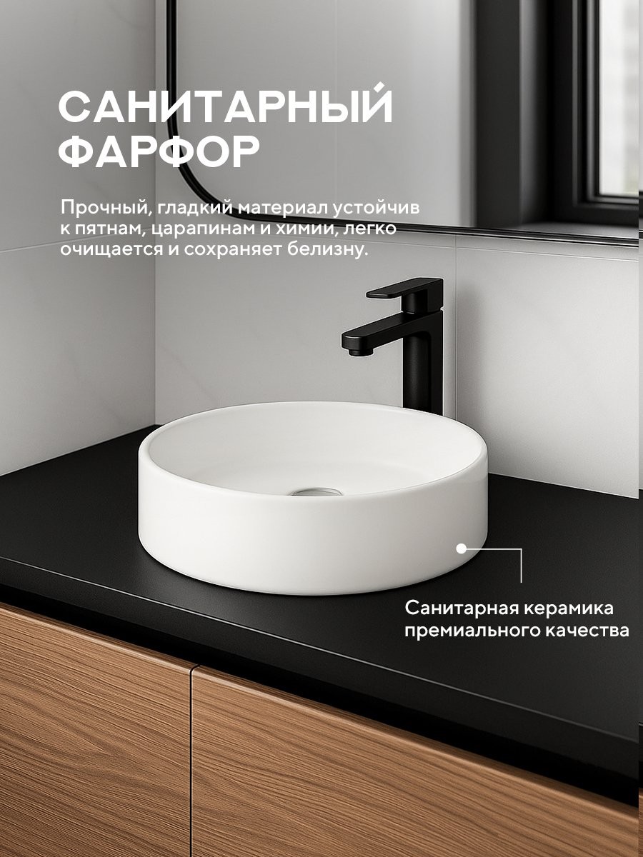 Фарфор, из которого изготовлены раковины, сохраняет свой привлекательный внешний вид даже при длительном использовании.