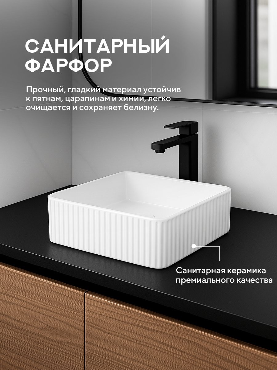 Фарфор, из которого изготовлены раковины, сохраняет свой привлекательный внешний вид даже при длительном использовании.