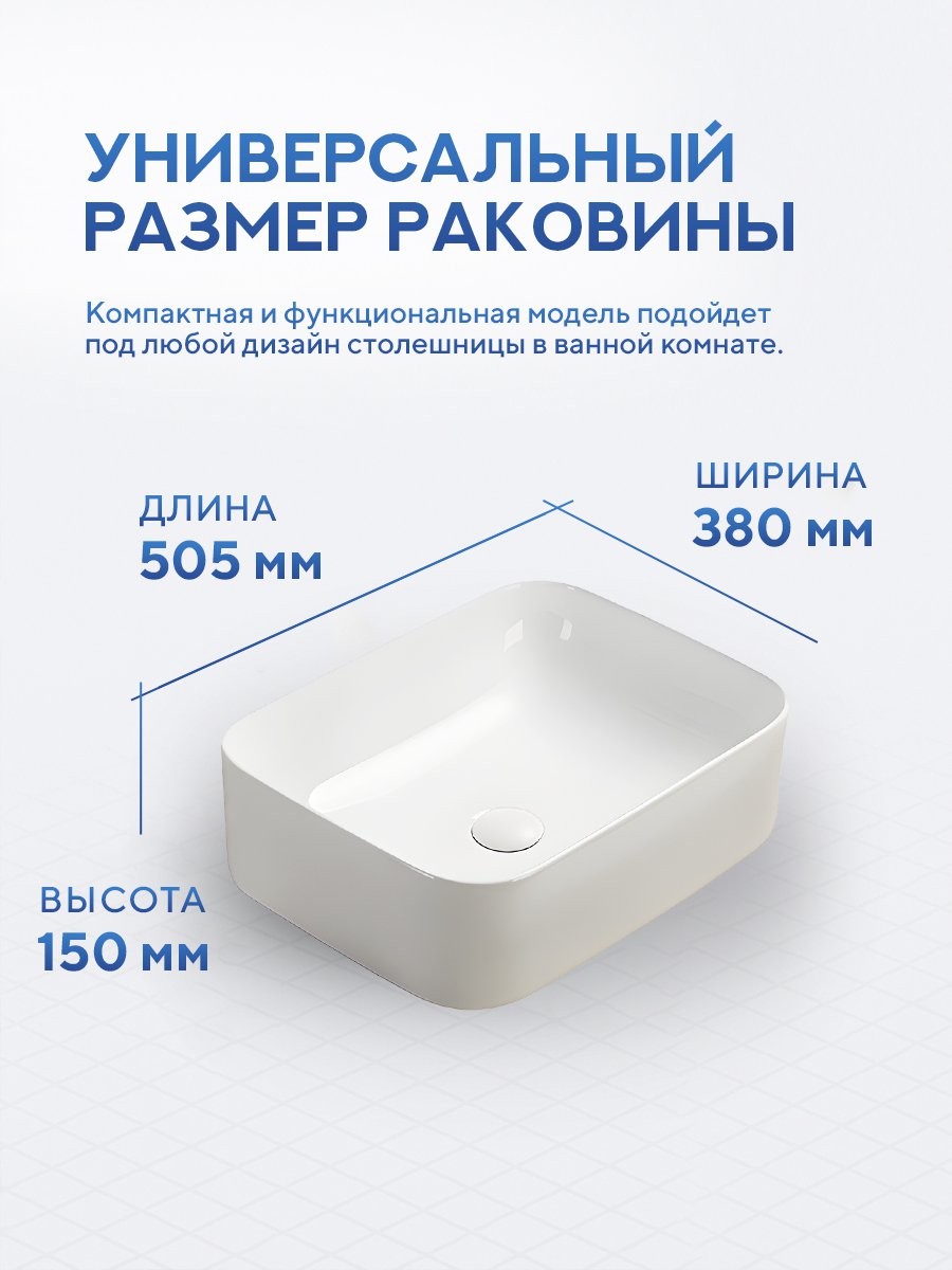 - Монтаж: накладной (на столешницу)