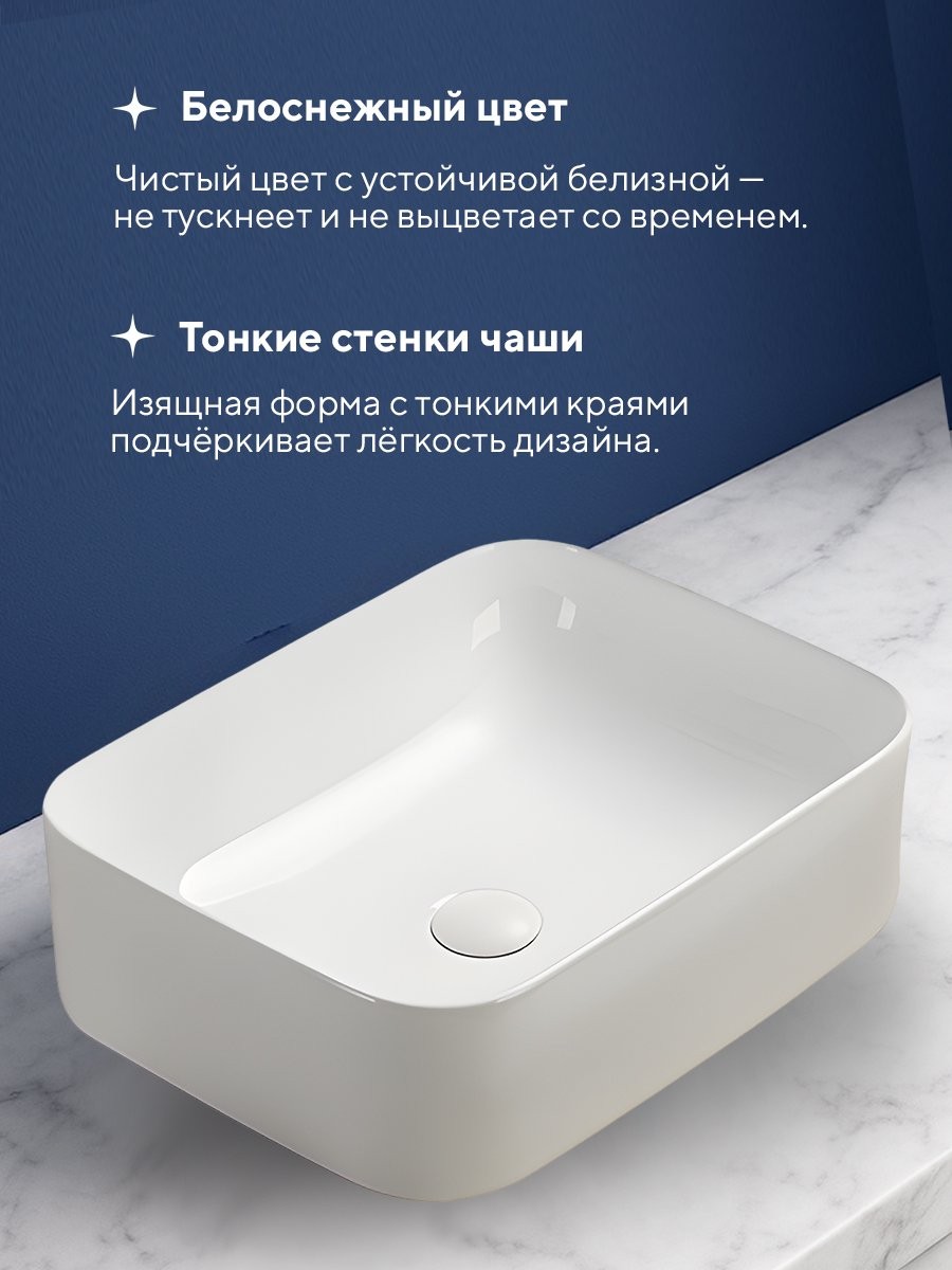 Раковина для ванной накладная Amore di Mare Vivaro 50303-RR 50,5x38 белый