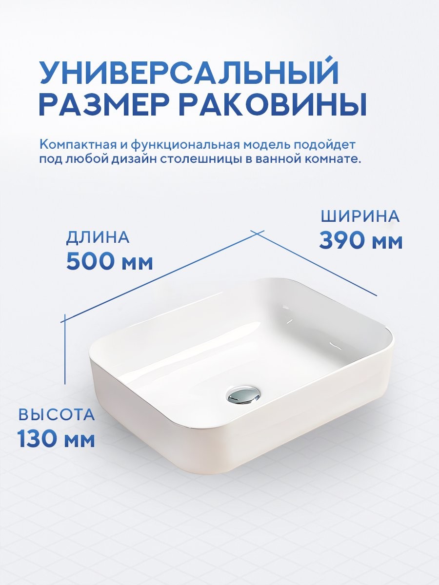 Раковина для ванной накладная Amore di Mare Vivaro 50312-RR 50x39 белый