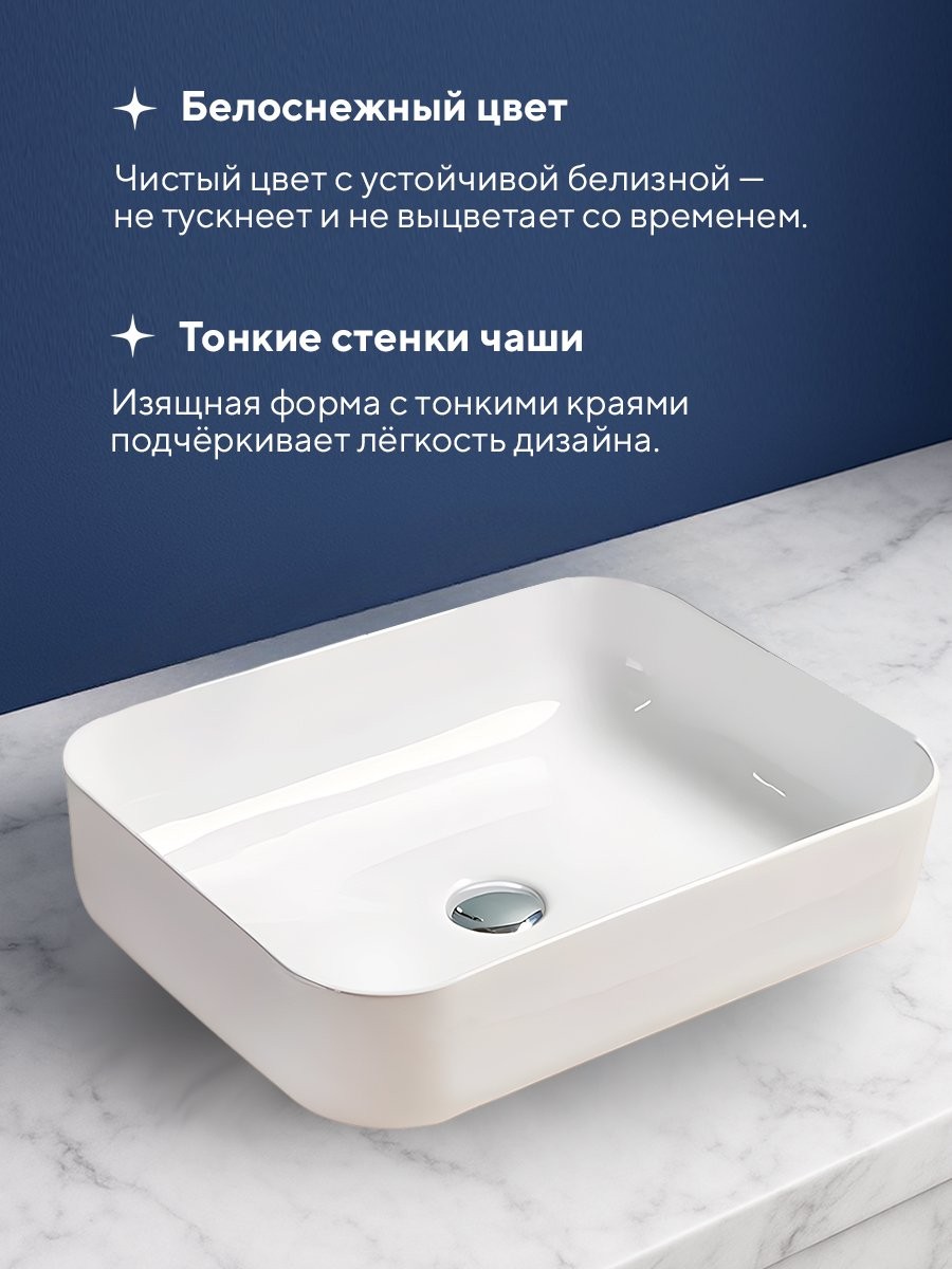 Умывальник накладной Amore di Mare Vivaro 50312-RR 50x39 белый
