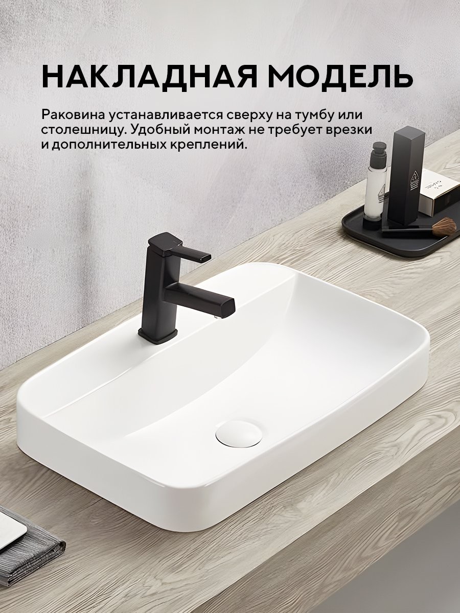 Раковина для ванной накладная Amore di Mare Vivaro 59309-RR 59x39,5 белый