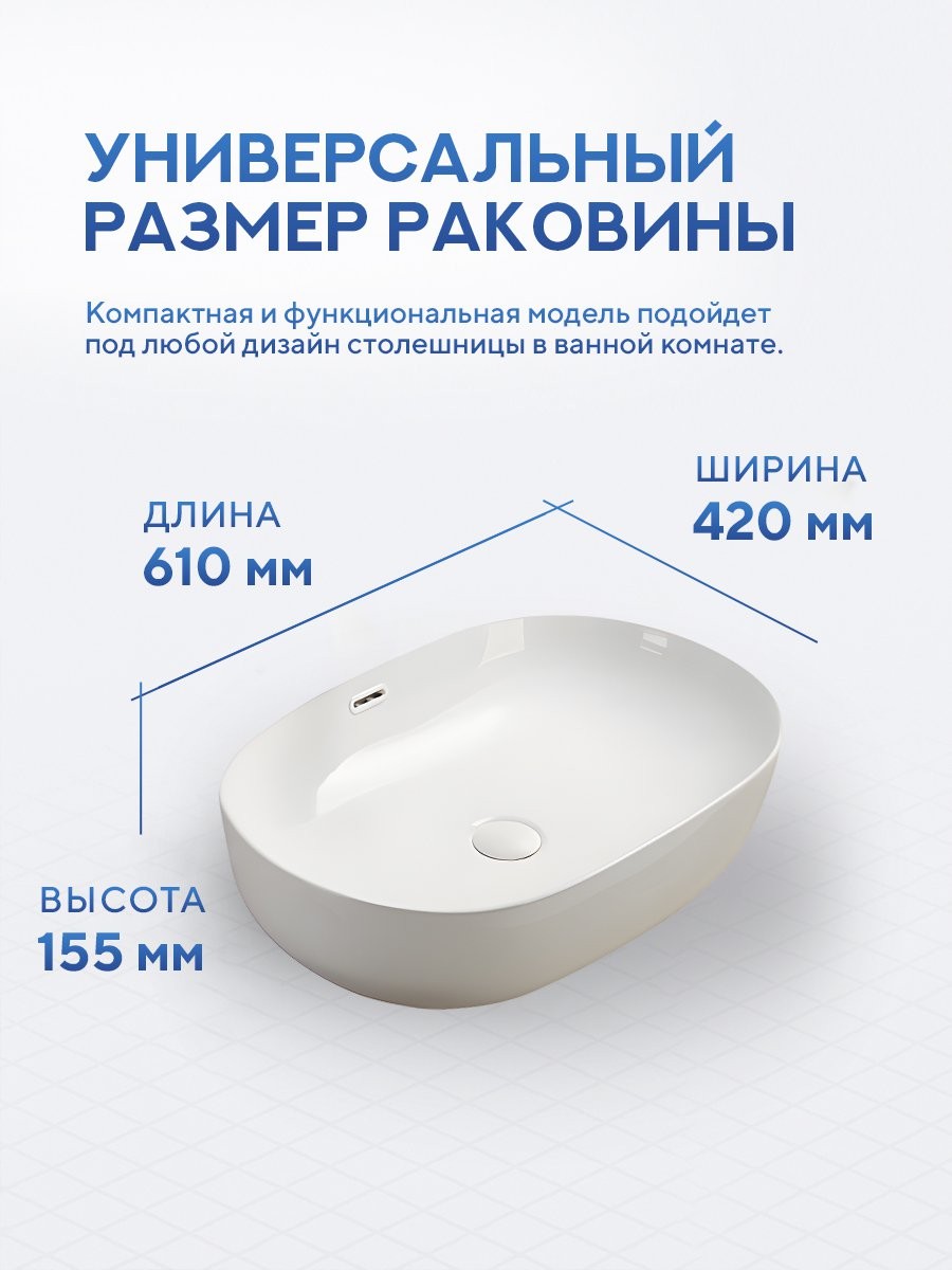 Раковина для ванной накладная Amore di Mare Vivaro 61301-OL 61x42 белый