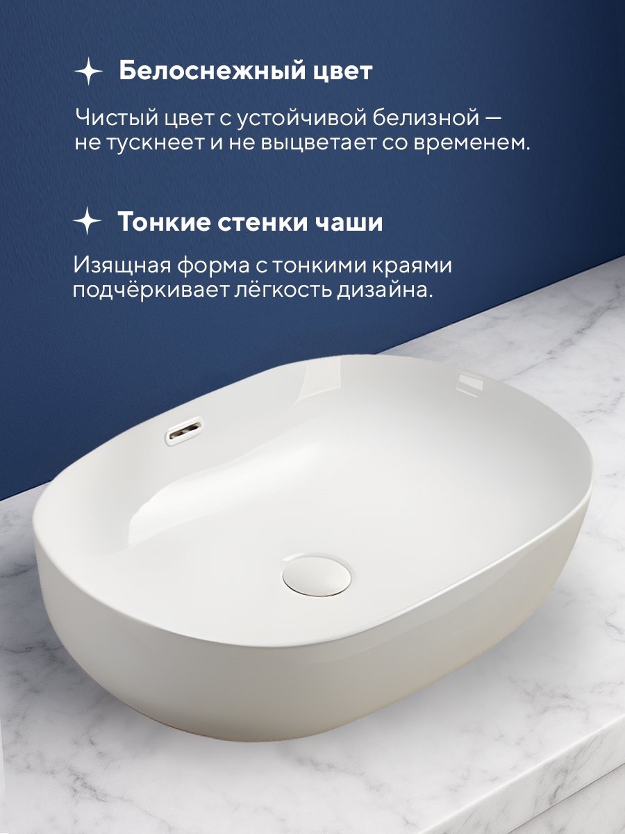 Умывальник накладной Amore di Mare Vivaro 61301-OL 61x42 белый