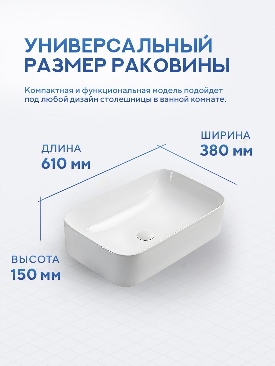 Раковина для ванной накладная Amore di Mare Vivaro 61302-RR 61x38 белый