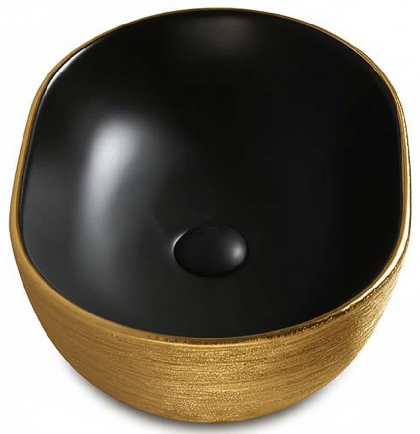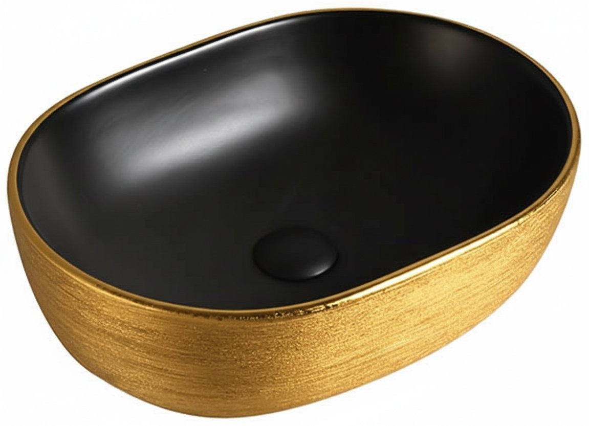 Умывальник накладной Roxen Sandra 570195-BGB 48x34 черный матовый/золото - Ширина: 48 см, Глубина: 34 см, Конструкция: На столешницу, Материал: Фарфор, Цвет: Чёрный|золото