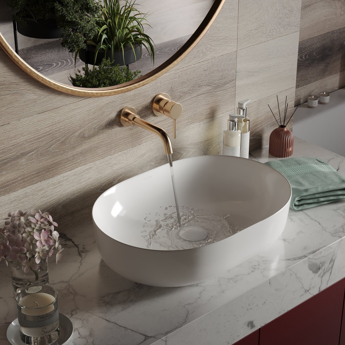 Умывальник Roxen Tim Max 570265 - овальная накладная модель c удобной чашей. Умывальник изготовлен из санитарного фарфора PorCelain, который обеспечивает прочность изделия, абсолютную белизну и гладкую поверхность. Благодаря уникальному процессу шлифовки (машинная + ручная) достигается отсутствие пор и углублений. Специальное антибактериальное покрытие Ultra Glide обеспечивает легкий уход, гигиеничность и первоначальный внешний вид на долгие годы.